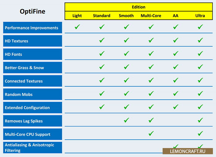 Есть три вида Optifine: